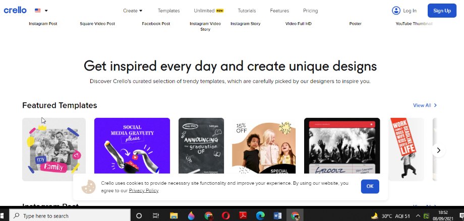 What's special about Crello is how it comes with an Animation Maker Suite, especially great for video editing and all your animated ventures. You can edit professional ready-made templates or use the logo maker to create inspiring logos for your brand.