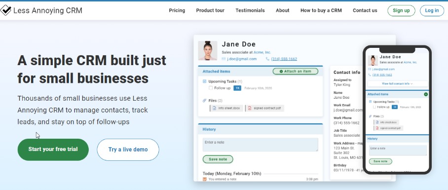 Perfect for small businesses and startups, Less Annoying CRM has a colorful, clean, and simple UI. It not only helps you manage customer relationships better but is also extremely useful in identifying each of these relationships.