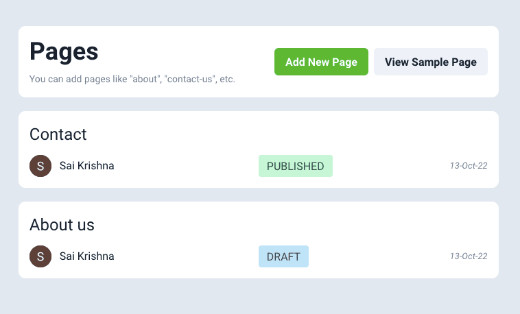 Sometimes you might want to add some pages like About, Contact, or anything to your blog. Superblog has Pages feature for this purpose.